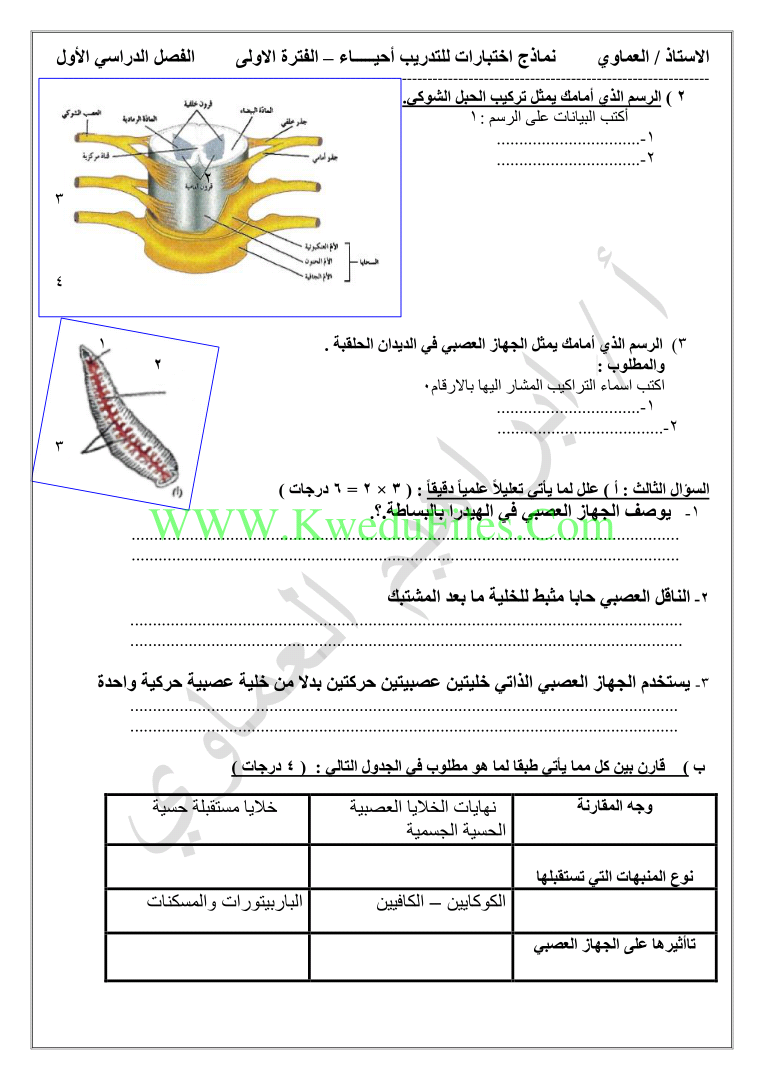 نماذج اختبارات في مادة الاحياء الصف الثاني عشر العلمي علوم الفصل الأول ملفات الكويت التعليمية