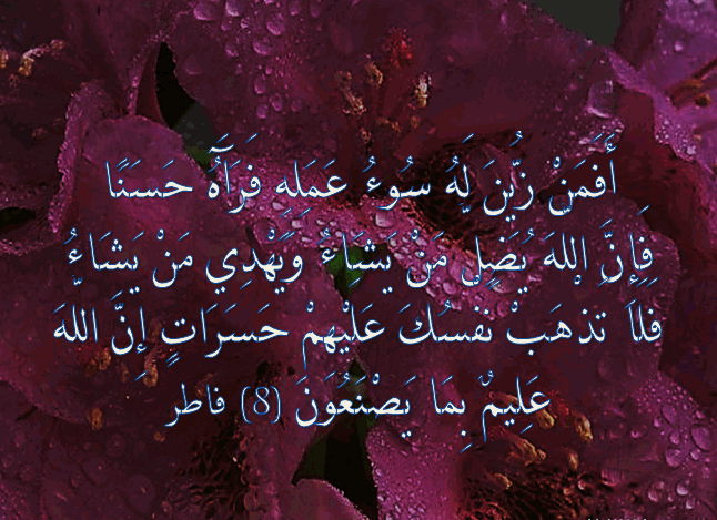 أ ف م ن ز ي ن ل ه س وء ع م ل ه ف ر آ ه ح س ن ا ف إ ن الل ه ي ض ل م ن ي ش اء و ي ه د ي م ن ي ش اء ف ل ا ت ذ ه ب ن ف س ك ع ل ي ه م ح س ر ات إ ن الل ه ع ل يم ب م ا ي ص ن ع ون 8 فاطر اجمل واروع الصور الاسلامية