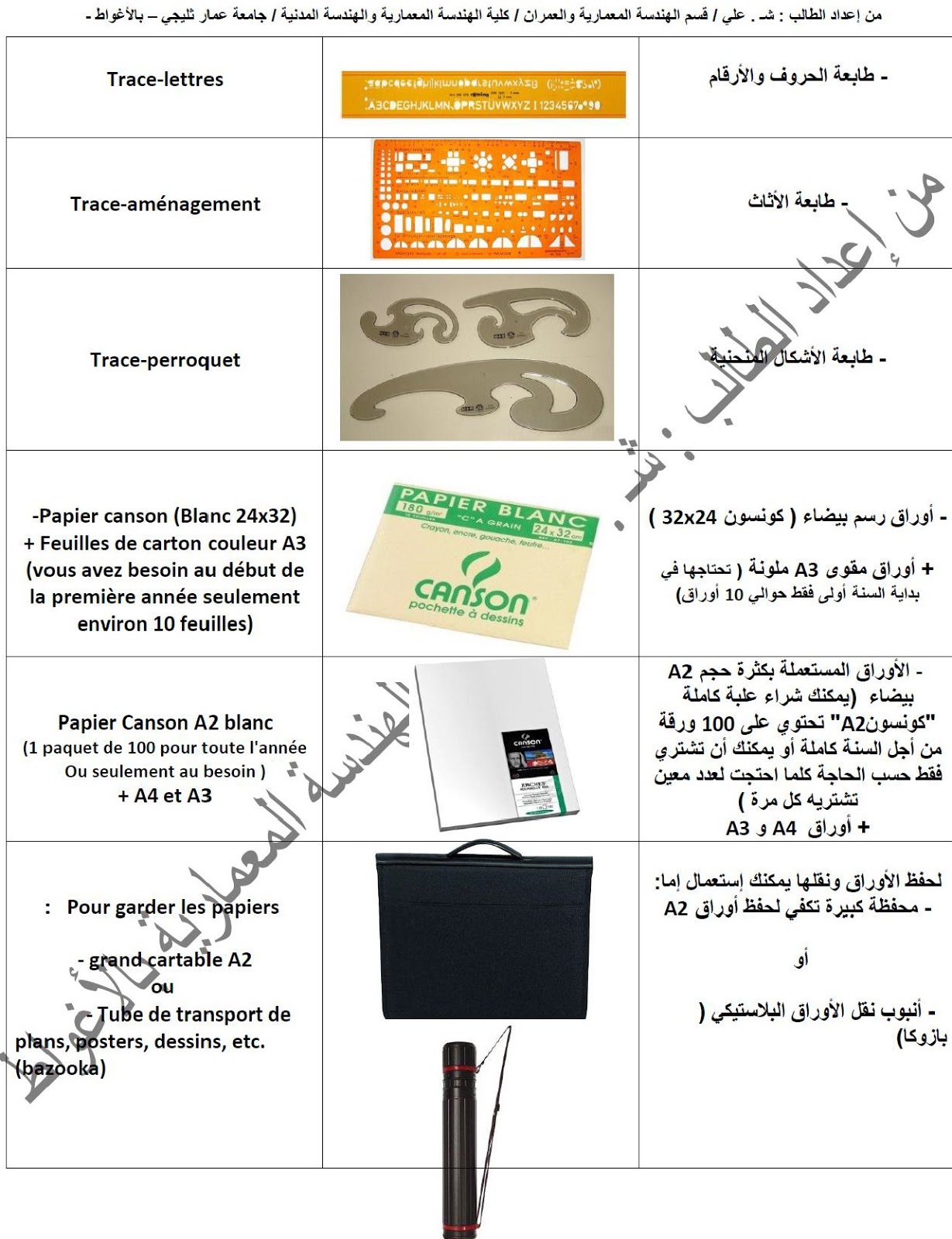 Archi Dz الأدوات التي يحتاجها طالب الهندسة المعمارية