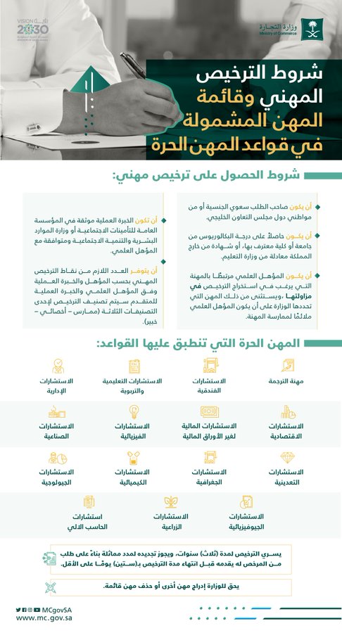 التجارة السعودية توضح أهداف إقرار قواعد تنظيم المهن الحرة وشروط الترخيص المهني معلومات مباشر