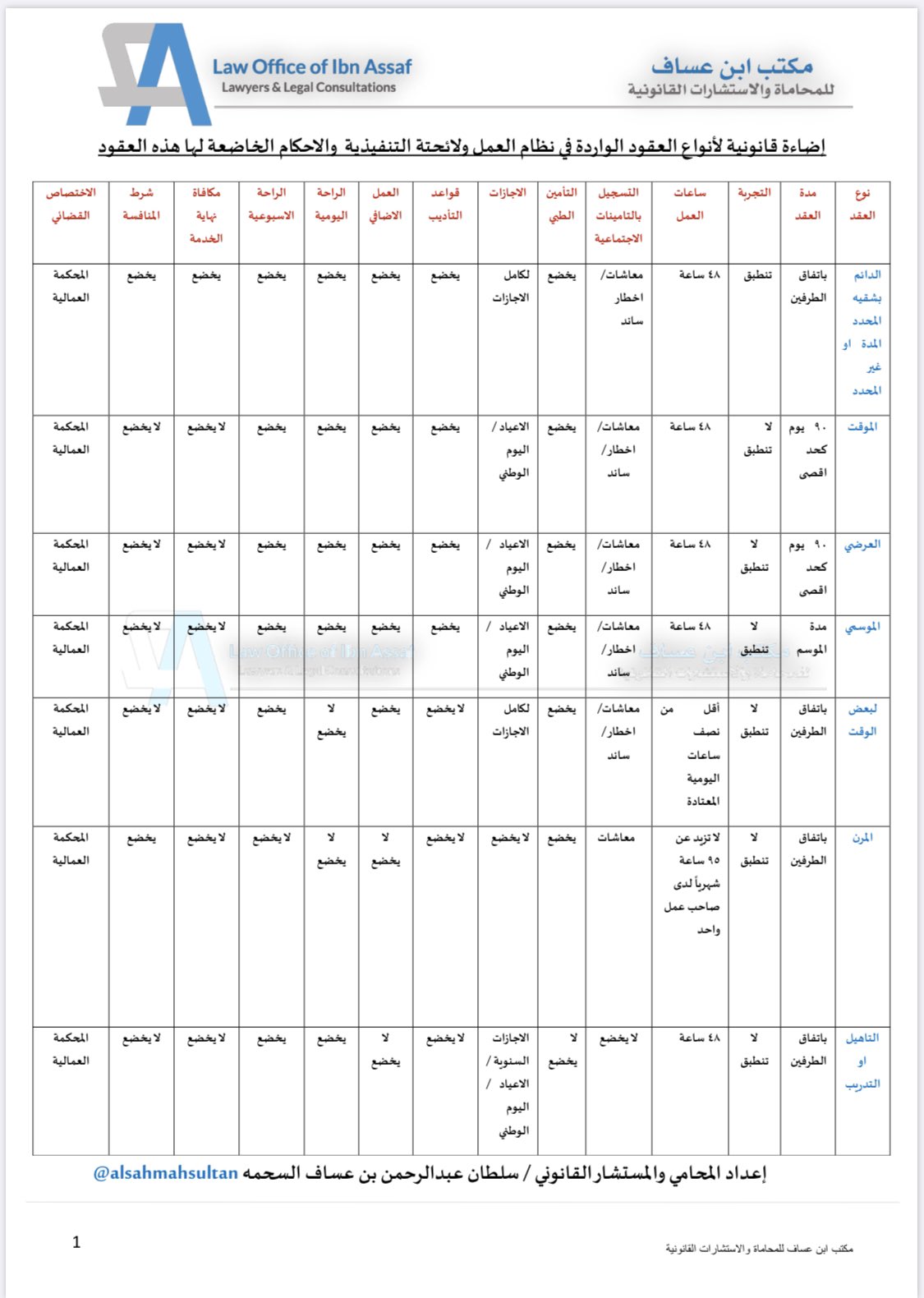 سلطان بن عساف السحمه Auf Twitter اضاءة قانونية عن أنواع العقود الواردة في نظام العمل ولائحته التنفيذية والأحكام الخاضعة لها هذه العقود ثقافة قانونية عمالية بن عساف للمحاماة Https T Co Bdpkmx8koj