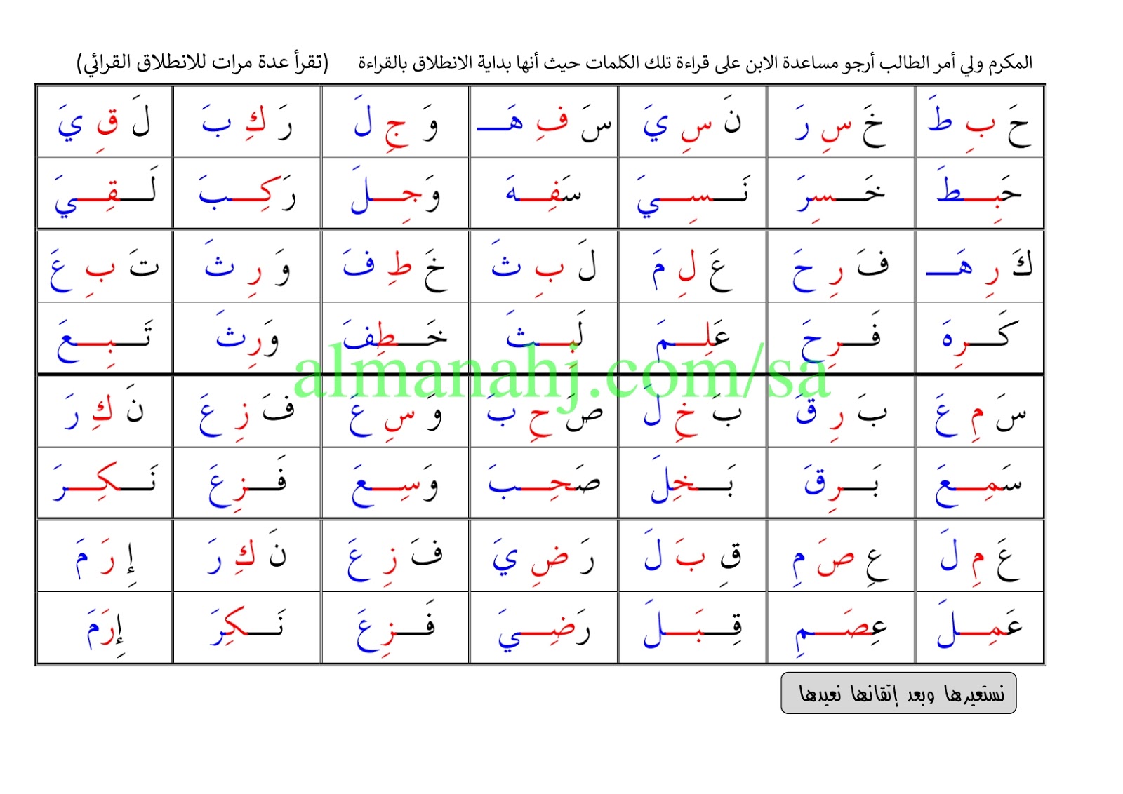 أوراق عمل للصفوف الأولية مرحلة ابتدائية لغة عربية الفصل الثاني المناهج السعودية