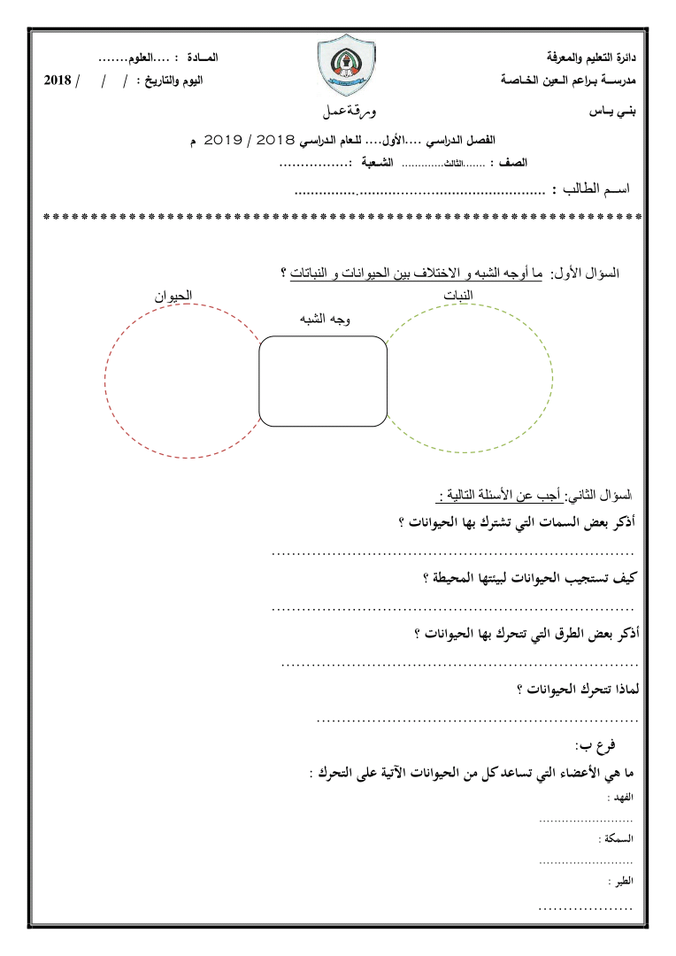 ورقة عمل علوم للصف الثالث الأساسي مدرسة بنات طمون الأساسية الأولى Facebook