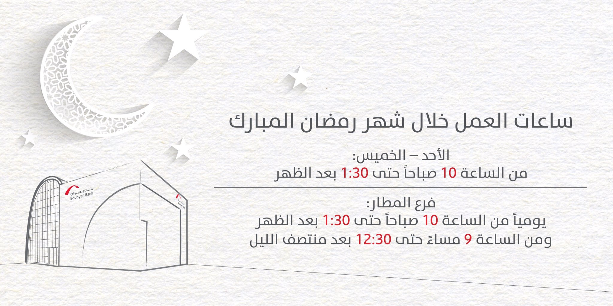بنك بوبيان No Twitter ساعات العمل خلال شهر رمضان المبارك