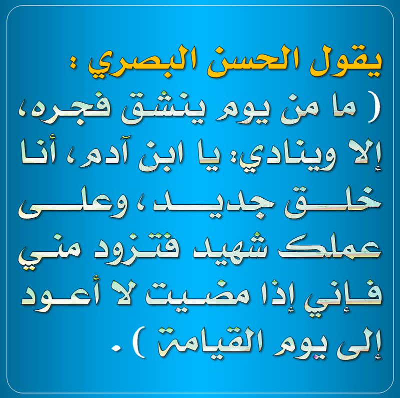 قال الحسن البصري رحمه الله ما من يوم ينشق فجره إلا وي نادي يا ابن آدم أنا خلق جديد وعلى عملك شهيد فتزو د م Precious Gifts Open Your Eyes Sweat