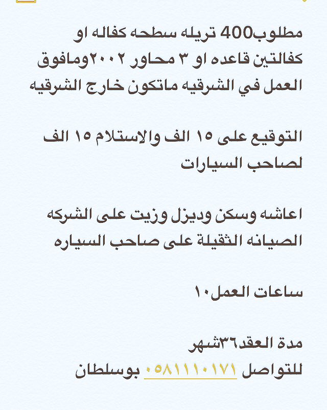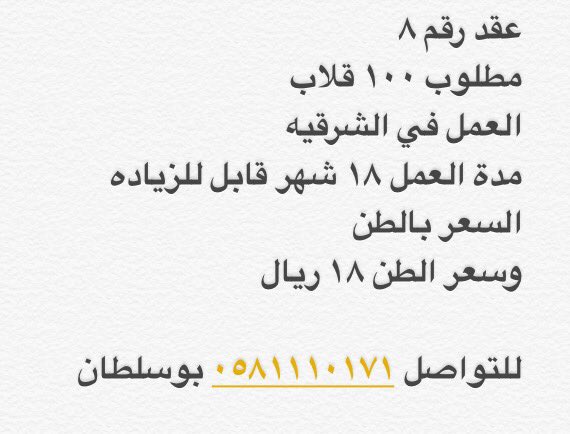 المزاد السعودي בטוויטר عقد قلابات جده جيزان مطلوب٢٠٠ قلاب في الشقيق نقبل الاعداد الفرديه الايجار٢٠الف التفصيل بصور Http T Co 3psvtrjmzj