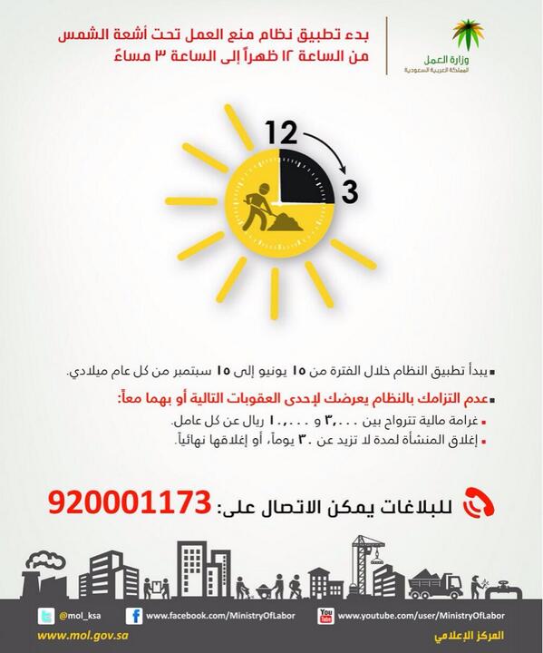 صحيفة القيصومة Twitterissa وزارة الموارد البشرية البدء بتطبيق قرار منع العمل تحت أشعة الشمس من الساعة الـ 12 ظهر ا حتى الـ 3 مساء