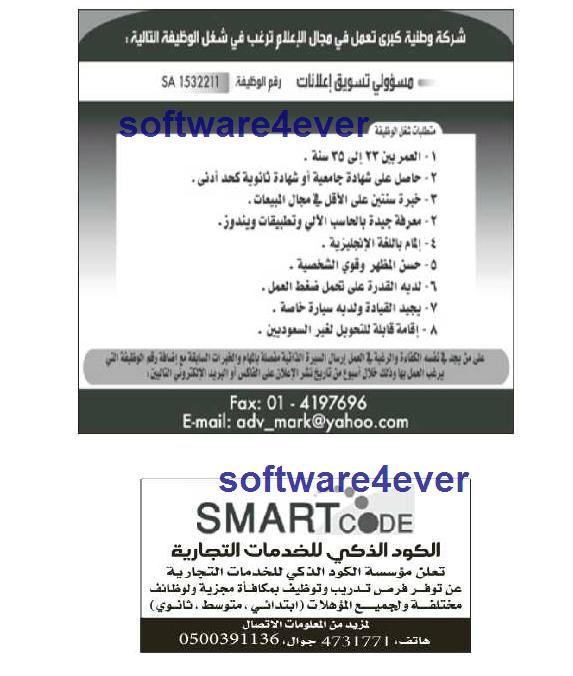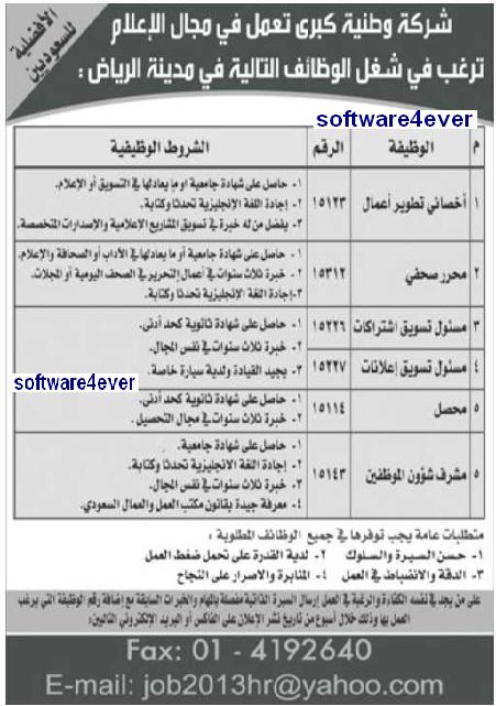 وظائف وفرص عمل شاغرة فى المملكة العربية السعودية وظائف جريدة الرياض 16 6 2012 26 رجب 1433 وظائف شاغرة فى شركة وطنية كبرى فى مجال الاعلام وظائف مجموعة شركات فواز عبد