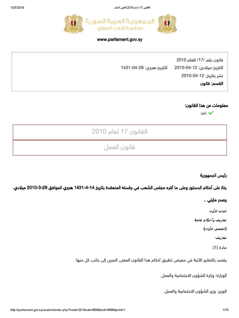 Syria Labor Law 2010 Arabic