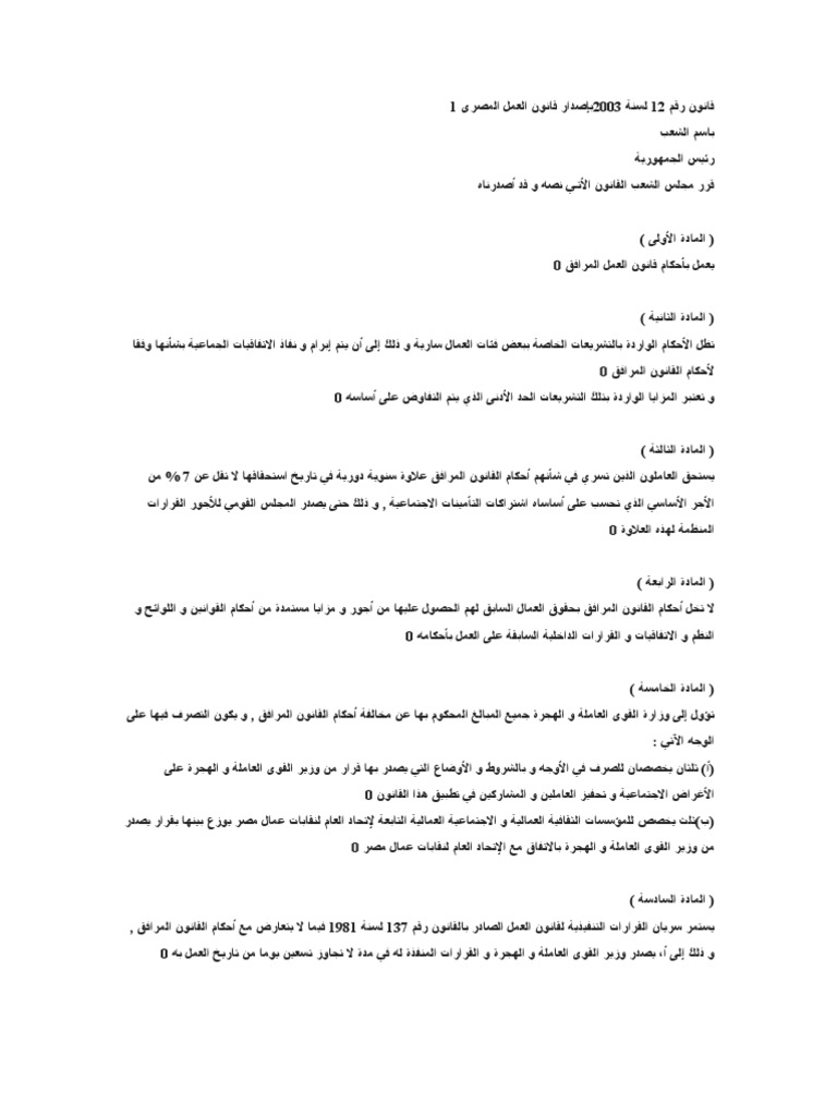 مراجعات التعليق على قانون العمل المصري الجديد رقم 12 لسنة 2003 أبجد