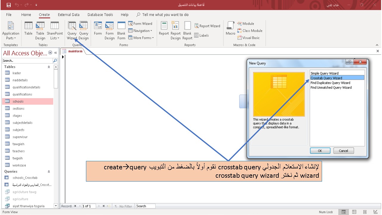 طريقة عمل الاستعلام الجدولي Crosstab Query في برنامج الاكسيس Ms Access مدرسة الويب Web School