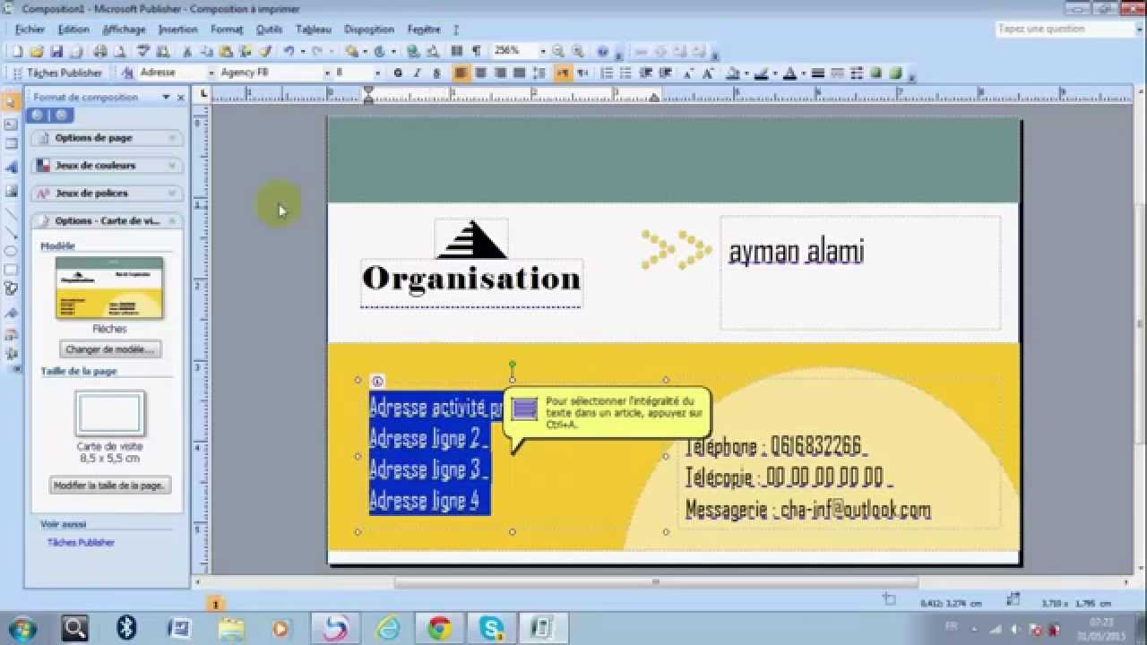 إنشاء بطاقات العمل في Publisher Publisher