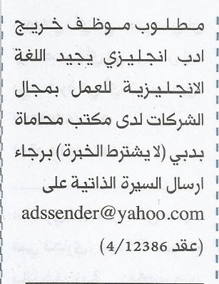 وظائف لخريجي اداب انجليزي للعمل فى دبي وظائف شاغرة فى الامارات