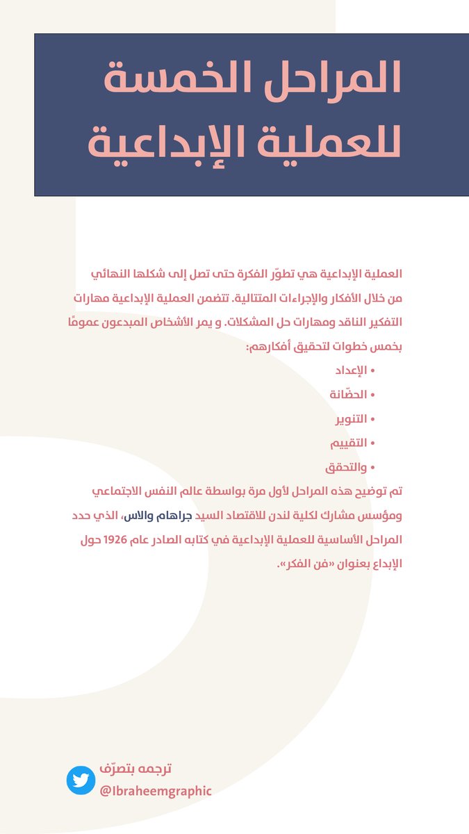 مراحل التفكير الابداعي حسب تقسيم العالم Wallas ١ مرحلة الاعداد ٢ مرحلة الاحتضان ٣ مرحلة الالهام والاشراق ٤ مرحلة التحقيق المصدر كتاب لمحا Twitter Thread From سعد المالكي Saad Almaleki Rattibha