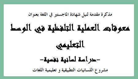 معوقات العملية التلفظية في الوسط التعليمي دراسة لسانية نفسية Pdf