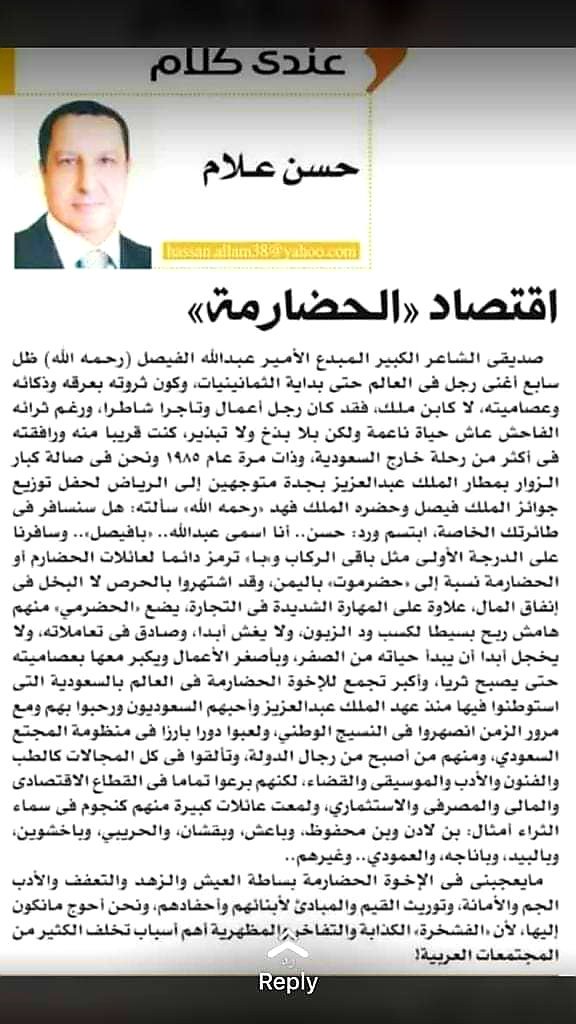 ট ইট র فهد عامر الأحمدي اقتصاد الحضارمة مقال جميل ذكرني بمقال قديم كتبته بعنوان من يعرف حضرميا عاطلا عن العمل السعودية اليمن فهد الأحمدي صباح الخير Https T Co Ui7ec01rug