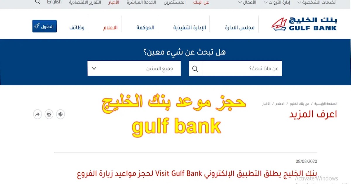 بنك الخليج يطلق التطبيق الإلكتروني Visit Gulf Bank لحجز مواعيد زيارة الفروع اعرف المزيد الأخبار الاعلام عن بنك الخليج بنك الخليج
