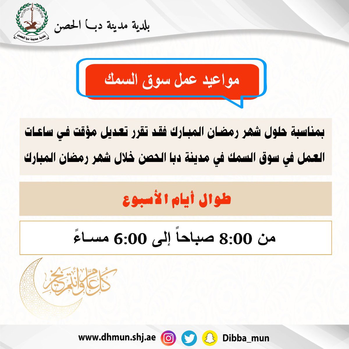 بلدية مدينة دباالحصن على تويتر مواعيد عمل سوق السمك في مدينة دبا الحصن خلال شهر رمضان المبارك بلدية مدينة دبا الحصن دبا الحصن عام الاستعداد للخمسين توعية كورونا التعقيم الوطني رمضان Https T Co 6tbemujrqb