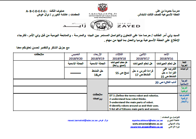 نموذج الخطة الاسبوعية لجميع المواد للصف الثالث من 16 سبتمبر الي 20 سبتمبر 2018 منتديات صقر الجنوب
