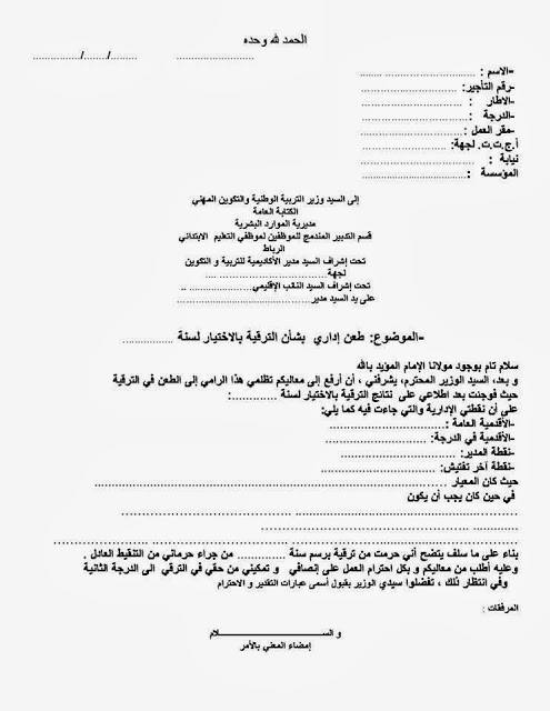 تربية وتعليم نسخة التجارب نموذج تظلم لعدم الترقي بالاختيار لسنة 2012