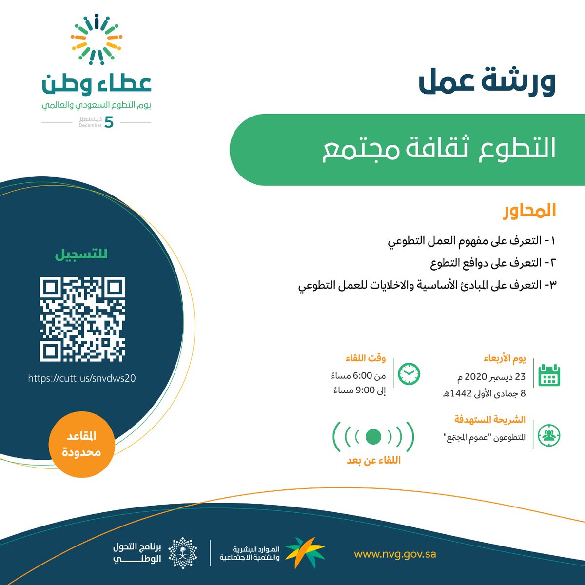 العمل التطوعي يسرنا دعوتكم لحضور جلسة بعنوان استقطاب Facebook