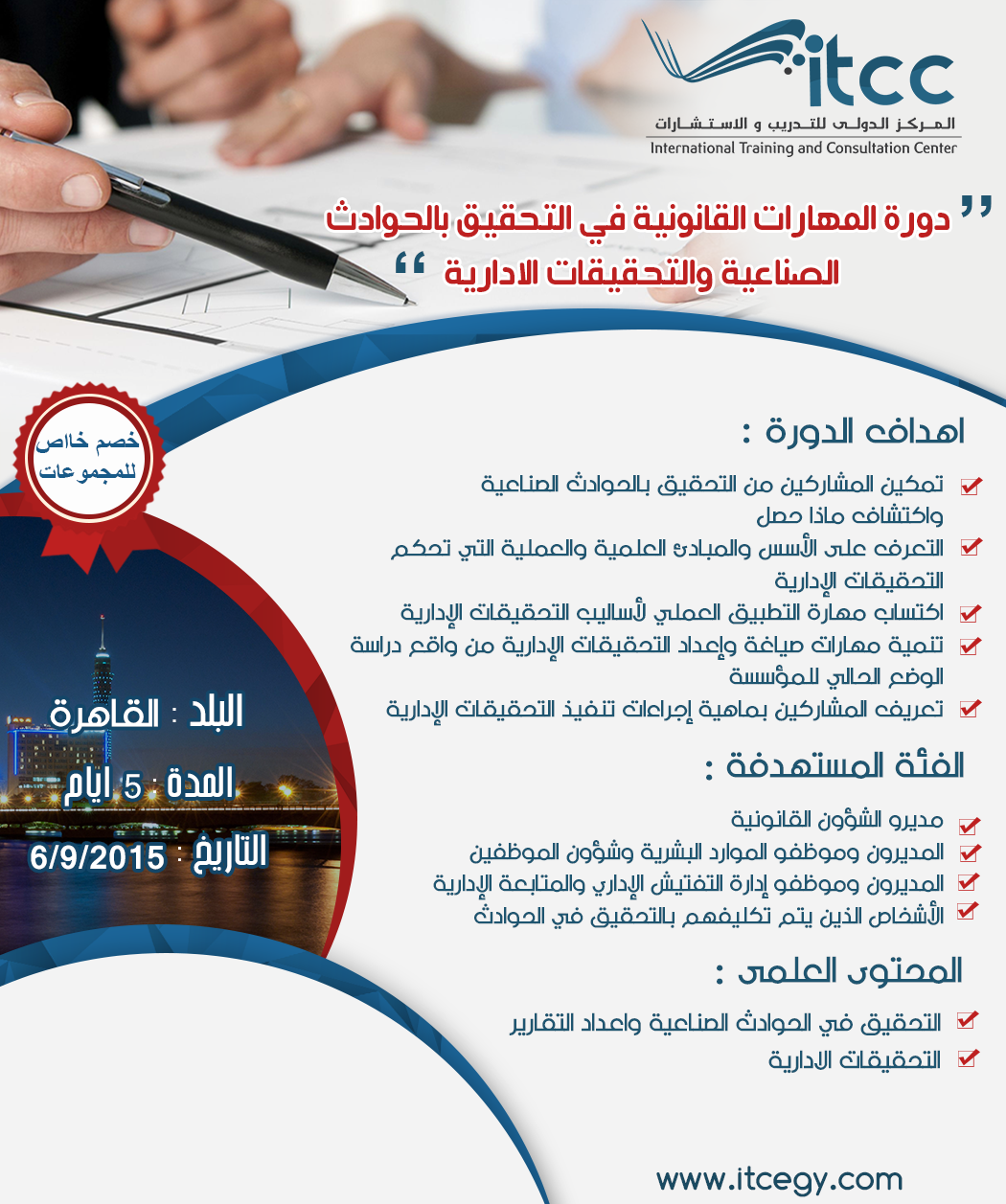 دورات تدريبية ورش عمل دبي اسطنبول ماليزيا Itcc Training Center دعوة لحضورة دورة تدريبية المهارات القانونية في التحقيق بالحوادث الصناعية والتحقيقات الادارية