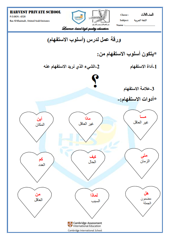 أدوات الاستفهام ورقة عمل مدرسة شهداء تفوح الأساسية الخليل Facebook