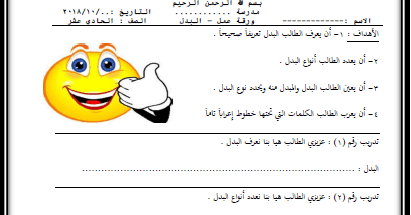 ورقة عمل لدرس البدل للصف الحادي عشر الفصل الأول المكتبة الفلسطينية الشاملة